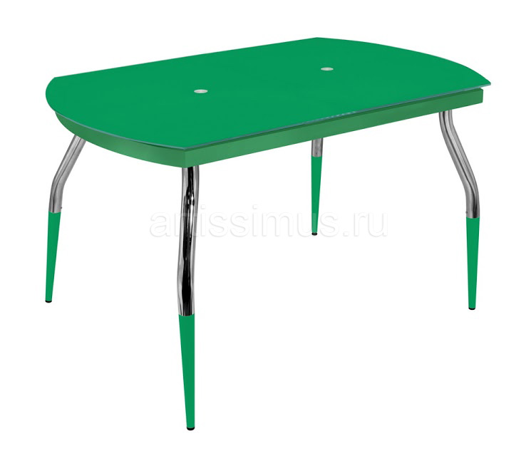 Стеклянная столешница толщиной 8 мм ламинирована цветной пленкой по специальной технологии «Гласс Дуплекс» и крепится к каркасу присосками из мягкого пластика.